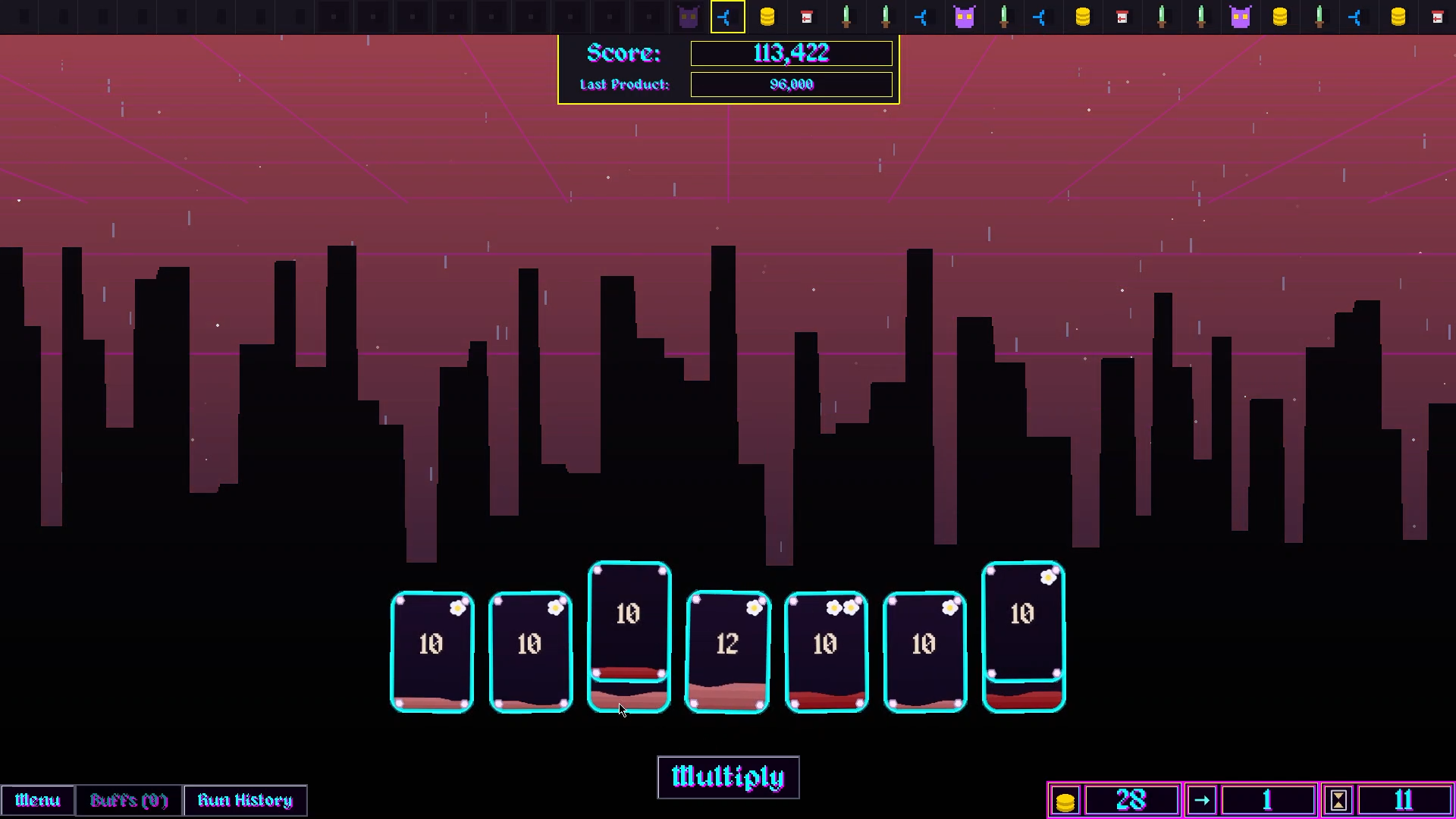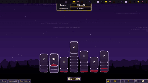 - Beat the Score: Multiply the cards in your hand to create a product that overcomes your own ever-growing score.